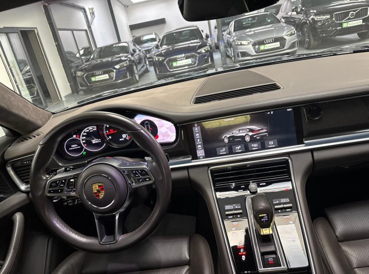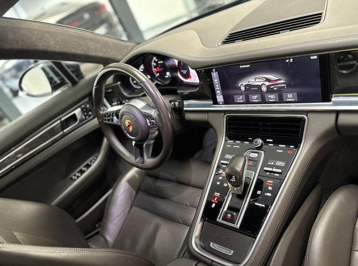 Ablage-Paket, Fahrassistenz-System: Park-Assistent mit Rückfahrkamera, Fahrassistenz-System: Spurwechselassistent, Fensterzierleisten schwarz (Hochglanz), Gepäckraumabdeckung fest, Interieur-Paket: Carbon, LM-Felgen vorn/hinten: 9,5x20 / 11,5x20 (Panamera Design Rad), Panorama-Schiebedach zweiteilig vorn elektrisch, Radioempfang digital (DAB+), Radnaben - Abdeckungen Porschewappen farbig, Servolenkung Plus (geschwindigkeitsabhängig), Soft Close Türen, Sport-Auspuffanlage, Endrohre Edelstahl, Verglasung hinten abgedunkelt (Privacyverglasung)